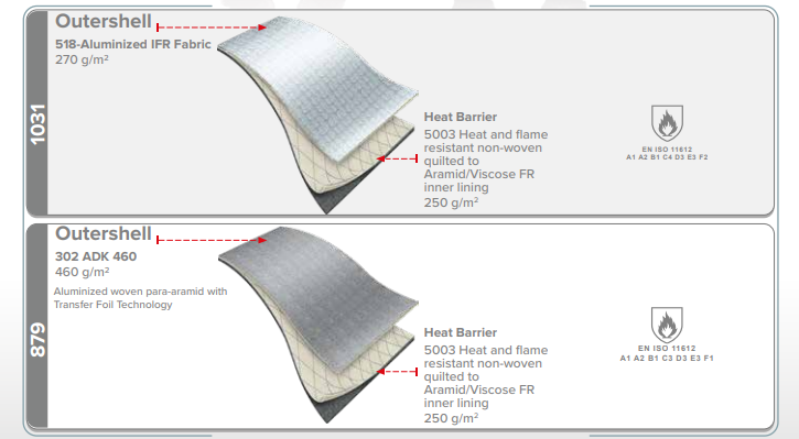 EN ISO 11612 certified aluminized jacket & trousers are designed to protect the wearer against high radiant, convective and contact heat, and consist of outershell and heat barrier available with 2 layer options.