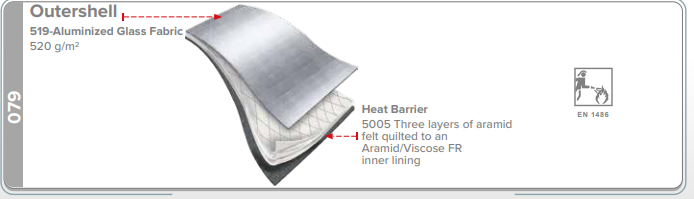 EN 1486 certified aluminized gaiters are designed to protect the wearer against high radiant, convective and contact heat, and the layer consists of outershell and heat barrier. For details please view layer options tab.